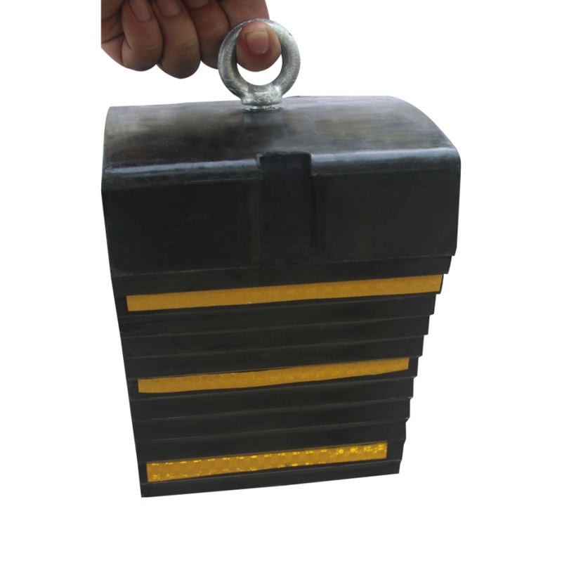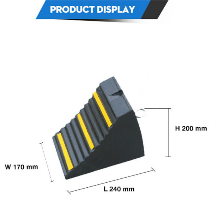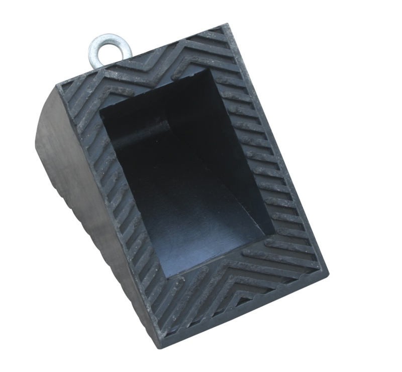 The wheel chock can be placed around the wheel of a parked airplane to help hold it steady. The rubber chocks resist impacts, wear, and water and are yellow for visibility. Curved surfaces allow the chocks to be placed flush to the wheel. The product is suitable for use with anti-skid rubber pads (sold separately).