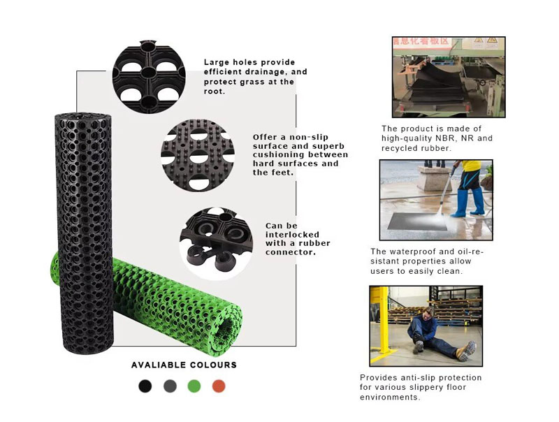 ⭐Core Features: Efficient Drainage – Rapid drainage (≥5L/m²/min) prevents water pooling. Anti-Fatigue Design – Cushioned structure reduces fatigue from prolonged standing and enhances comfort. Slip-Resistant & Shock-Absorbing – High-grip texture reduces joint impact during movement. Waterproof & Wear-Resistant – Weather-resistant rubber withstands heavy loads (500kg/m²) and harsh environments. Easy Cleaning & Maintenance – Washable with water or pressure washers; modular design allows quick replacement.